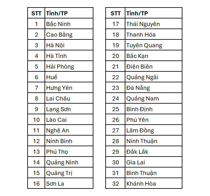 (*) Danh sách các Tỉnh/ Thành phố hiện đang áp dụng chương trình: