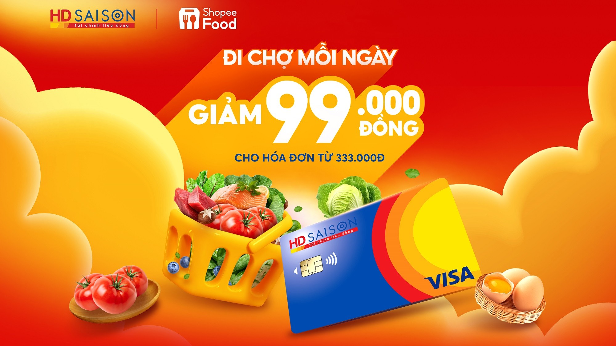 Quý khách hàng sẽ được nhận thêm ưu đãi xịn khi đi chợ mỗi ngày cùng HD SAISON và ShopeeFood trong tháng 3 này. Cụ thể như sau: