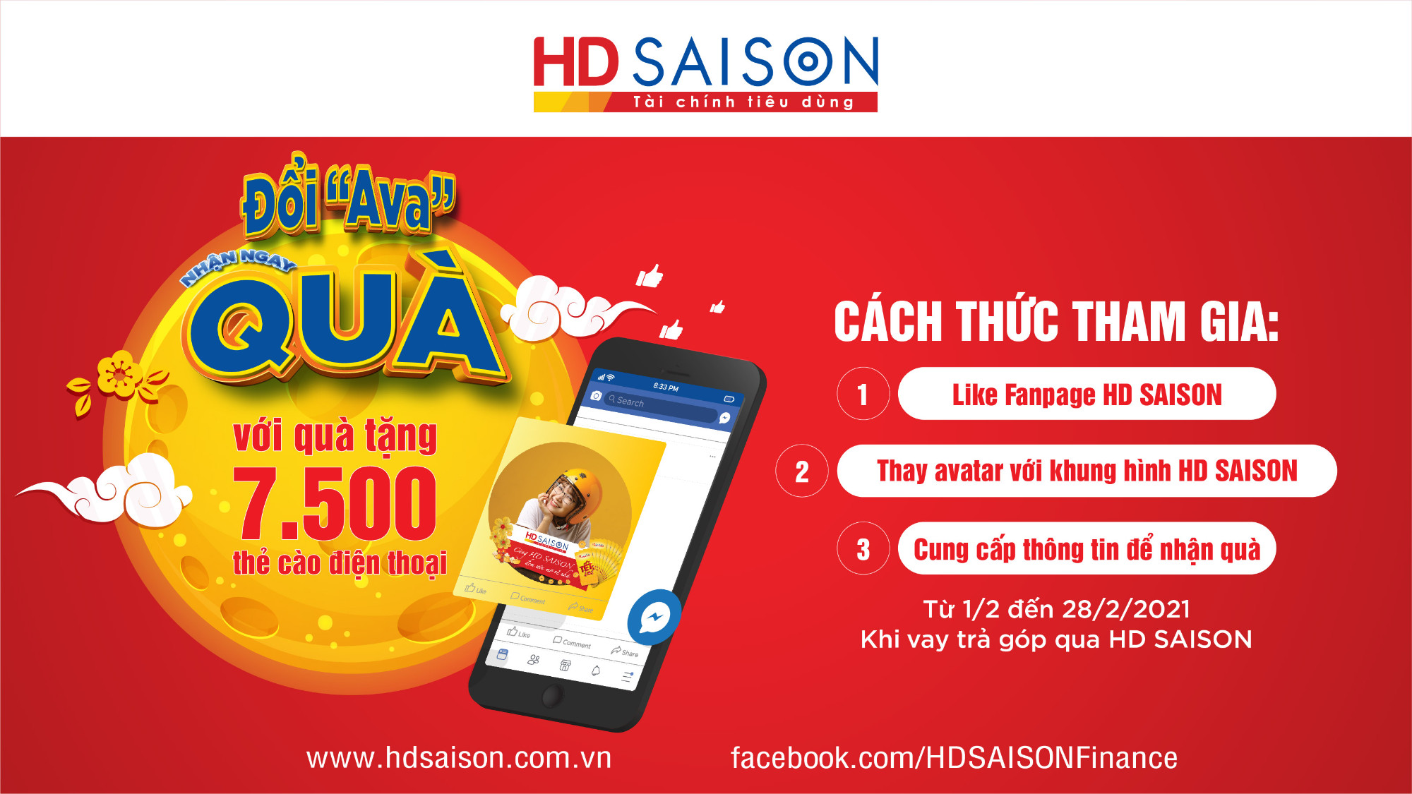 Từ 1/2 đến ngày 28/2/2021, Quý Khách hàng có nhu cầu vay trả góp với HD SAISON sẽ nhận được giải thưởng hấp dẫn từ chương trình ĐỔI "AVA", NHẬN NGAY QUÀ. Cụ thể như sau: