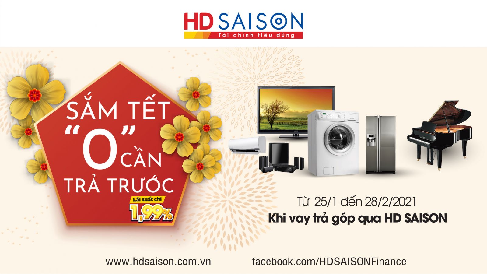 Chào đón Tết Nguyên đán Tân Sửu, HD SAISON triển khai chương trình ưu đãi đặc biệt dành tặng tất cả các khách hàng trên toàn quốc có nhu cầu mua sắm để nâng cao chất lượng cuộc sống của bản thân và gia đình. Cụ thể như sau: