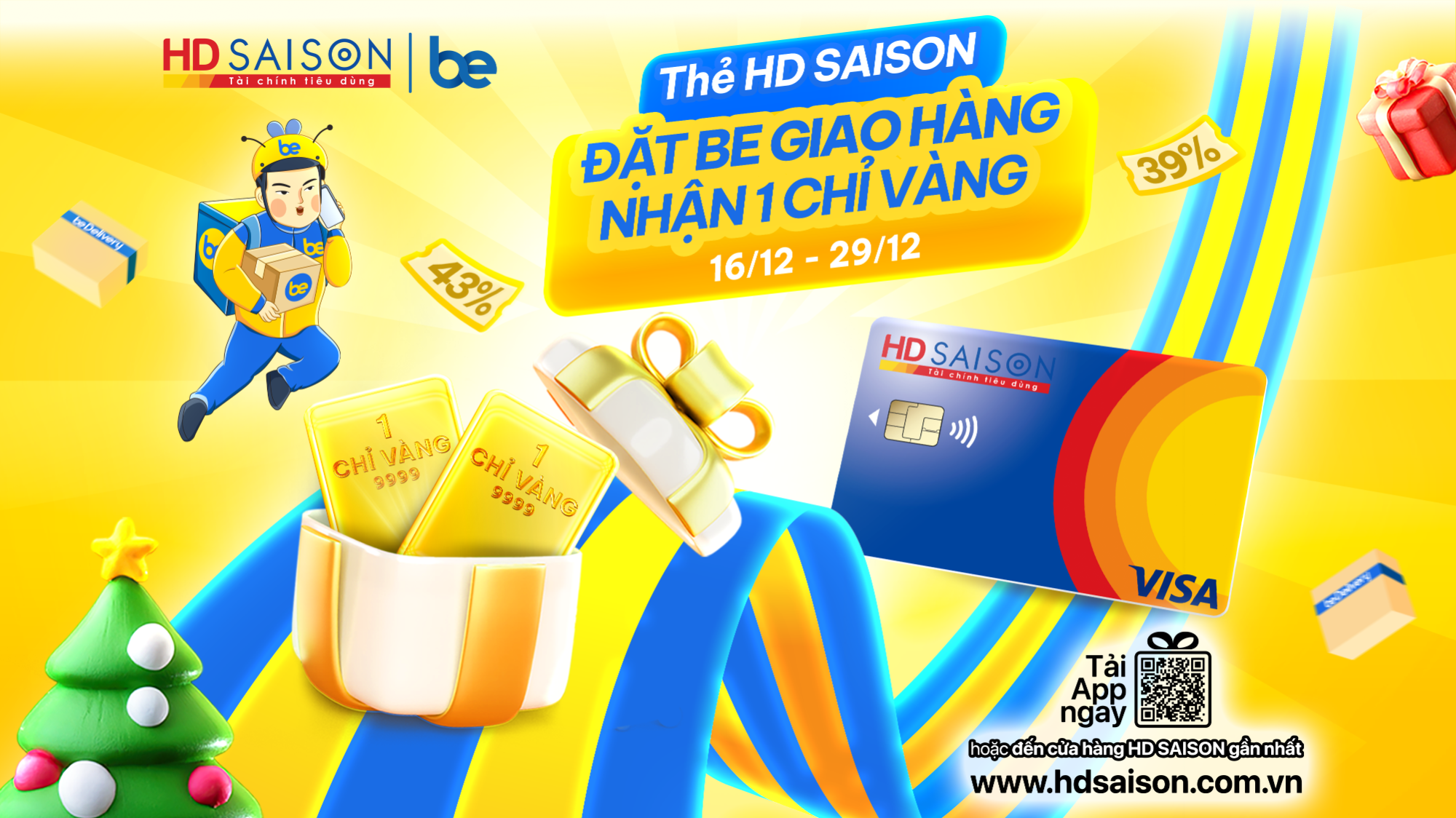 Khi Quý khách hàng sử dụng Thẻ tín dụng HD SAISON thanh toán cho các đơn giao hàng Be Delivery trên ứng dụng Be sẽ có cơ hội nhận 1 chỉ vàng SJC 9999.