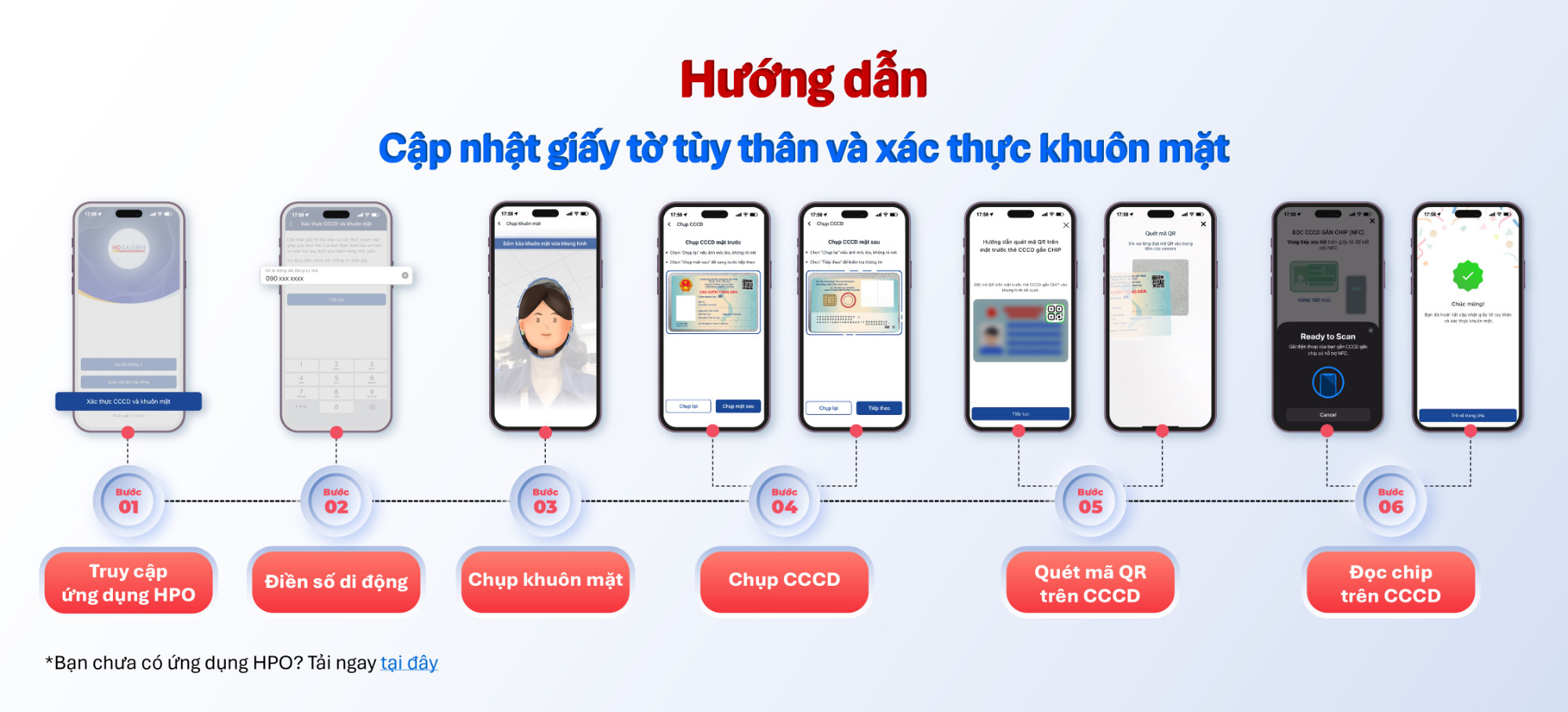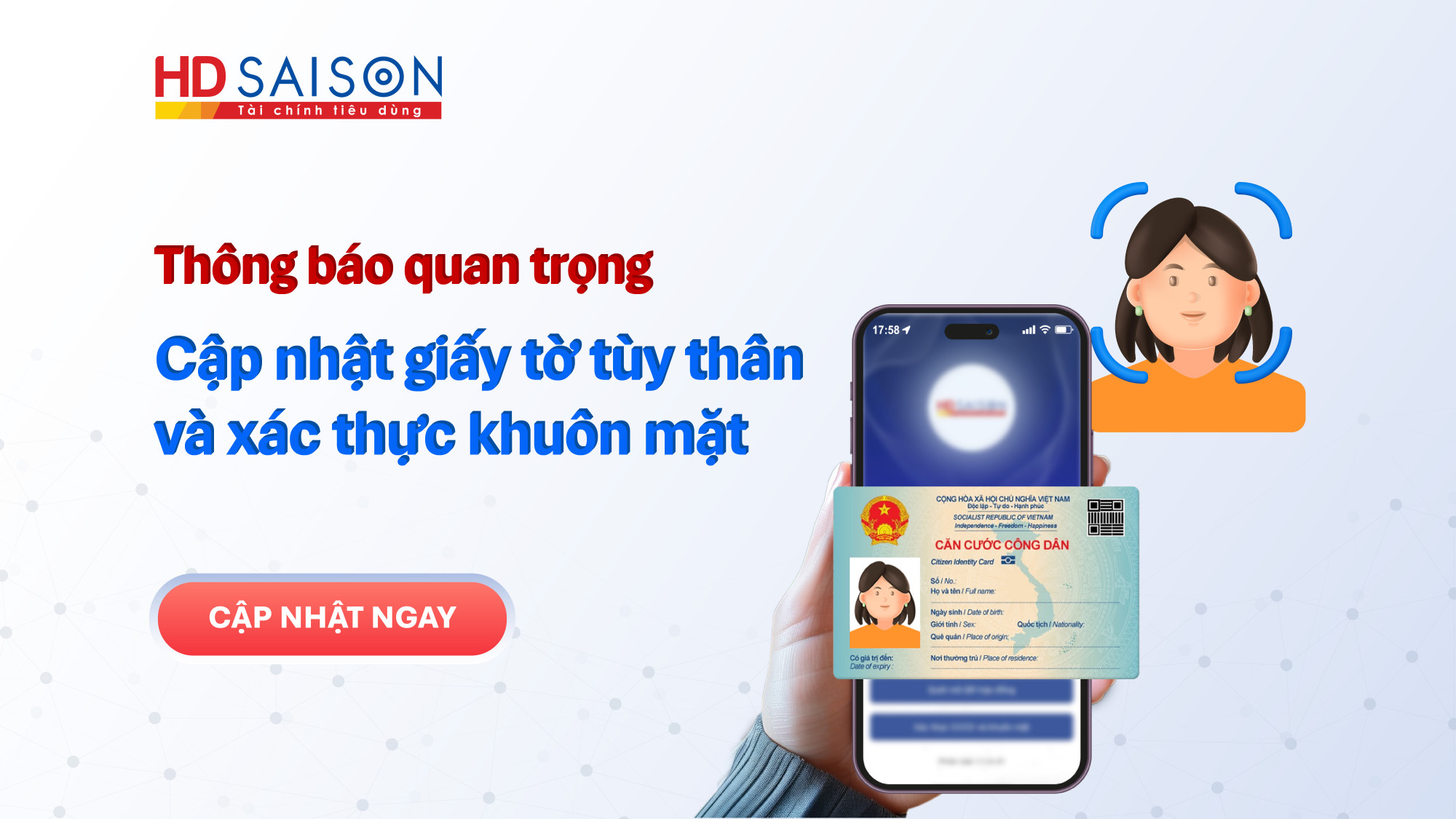 Nhằm tuân thủ quy định của Ngân hàng Nhà nước và đảm bảo an toàn khi sử dụng thẻ, Quý khách cần cập nhật ngay giấy tờ tùy thân và xác thực khuôn mặt qua ứng dụng HPO của HD SAISON theo hướng dẫn dưới đây.