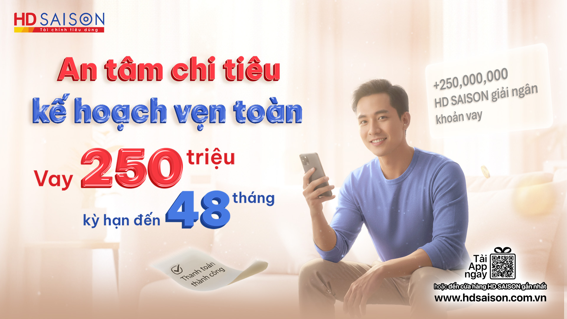 Với gói vay lên đến 250 triệu đồng từ HD SAISON, bạn có thể an tâm chi tiêu và hiện thực hóa những dự định của mình — từ việc trang trải chi phí học tập, đầu tư cho kinh doanh nhỏ, mua sắm thiết yếu đến hoàn thiện những kế hoạch cá nhân — tất cả đều có thể được hỗ trợ một cách linh hoạt và an toàn: